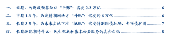 其次,中期1-3年,针对的是中长期债务的化解:为疫情期间地方“补账”,或需要约6万亿;