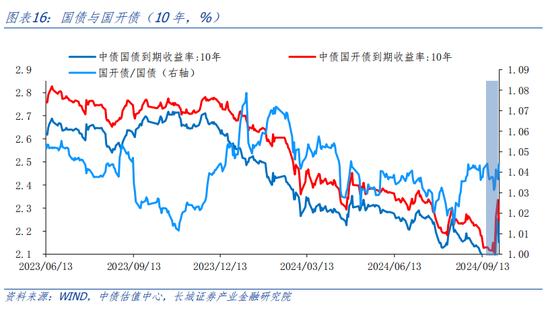 然而,随后在9月24日三部委新闻发布会及政治局会议公布了一系列超预期政策后,市场风险偏好大幅提升,股市大幅上涨,而债市则出现回调并震荡。