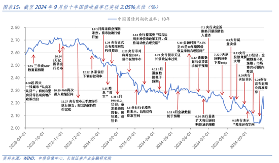 总体来看,9月此次长端利率单边快速下行的主要原因是市场博弈降准降息、宽松预期助推了债市的做多情绪,再加上央行还没有过多干涉,因此在9月18日美联储降息50BP之前,我国利率已经历过一轮抢跑浪潮,并维稳在低位。而924和926政策落地后,利率开始重新回升。