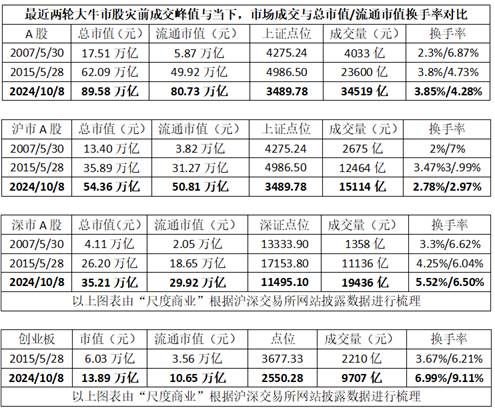 所以,即便以金融数据当下M2相比10年前的2.48倍来看,对比A股2015年牛市最高峰期间的2.36万亿最高成交量,当下流动性理论上足够推升至5.85万亿的两市成交金额。当然,2015年的A股巨额成交量推升,有场外配资的推升,当下对于A股配资已全面清理,加杠杆有限的情况下,对应实际成交量应该会有所折损约万亿级别,因此约5万亿的成交量对于A股而言在牛市周期情况下是有足够的流动性支撑,甚至可能会更高。