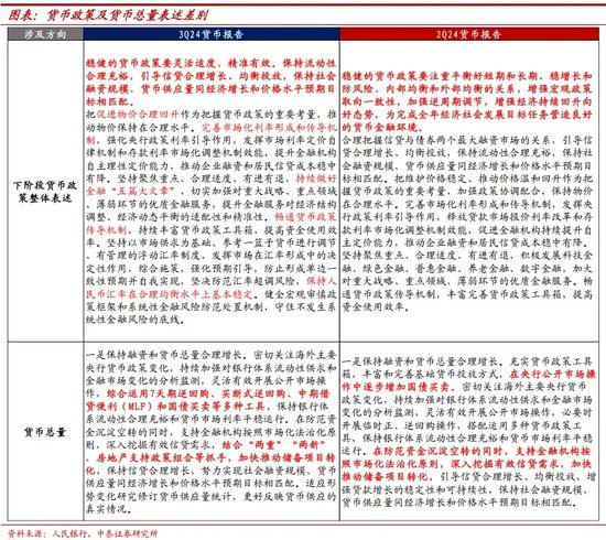 (1)报告强调,坚持支持性的货币政策,加大货币政策调控强度。货币政策基调延续“灵活适度、精准有效”,和924新闻发布会保持一致。今年以来,货币政策适度宽松,经济运行总体平稳、稳中有进。当前经济运行仍面临困难和挑战,外部不确定性也在上升,未来货币政策还会保持对实体经济足够的支持力度,重点关切仍为促进经济增长,以实现充分就业,促进物价合理回升。从当前来看,一方面金融政策面临的内外部约束条件压力较小;另一方面兵马要动、粮草先行,金融政策要起到政策先行军的作用,我们认为金融政策将继续维持全面积极的态度。