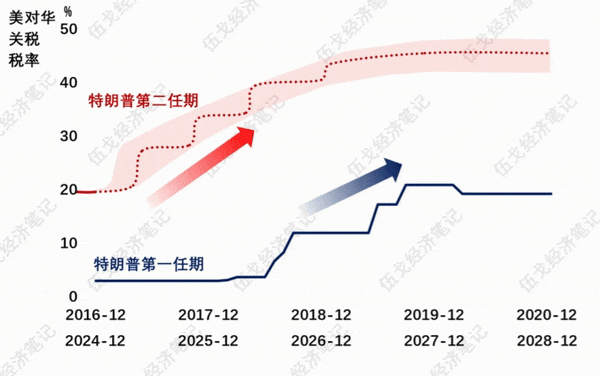 与上次不同,特朗普在此次政府过渡期间对重要官员的提名时间更早,意味着就任后政策推进速度更快。更早且更大幅加征关税,大概率成为其优先事项。尽管其宣称对华开征60%的关税,但未必一蹴而就,或更多采取“极限施压”后“边打边谈”的博弈策略。