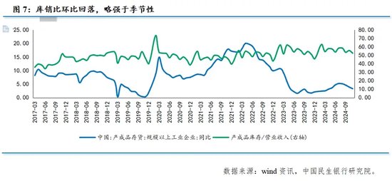 结合11月当月工业企业利润降幅收窄和产成品存货增速回落来看,企业延续被动去库存,反映增量政策有力带动及存量政策持续显效下,国内需求边际改善,叠加产销衔接水平回升,企业延续被动去库存。