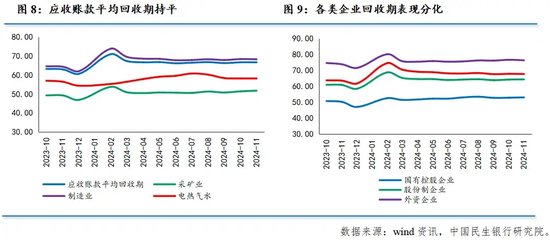 1-11月,工业企业应收账款平均回收期为66.7天,持平前值,表现弱于季节性。内需仍然偏弱、工业企业利润延续负增以及地方政府拖欠企业账款等因素,导致企业回款仍存压力。