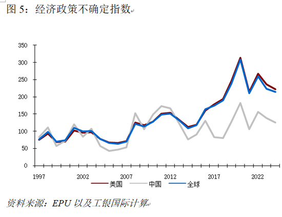 在宏观政策方面,中国政策波动性显著低于主要发达经济体。无论是在财政货币政策协同发力上,还是在产业政策与区域发展配合上,中国展现出强大的政策一致性与前瞻性,这种稳定性本身已成为一种制度稀缺资源。从经济政策不确定性指数的走势来看,美国和全球整体的不确定性水平自2020年以来持续维持高位,尤其在疫情初期和俄乌冲突期间显著飙升,而中国的不确定性指数波动较小,整体处于更低区间。这一对比凸显出中国在关键时刻能够快速形成政策合力,减少市场预期扰动,在复杂环境下提供了更为稳定的发展预期与政策环境。