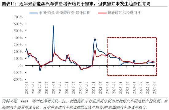 其四,新兴产业大多正从扩张期向稳定期过渡,产业集中度偏低,产业集中度提升的过程导致中小企业面临淘汰压力,不可避免地诱发“内卷”。大多数新兴产业在发展初期均因受到政策支持而吸引大量企业涌入,但当行业从扩张期向成熟期的寡头型市场结构过渡时,市场份额向头部企业集中,中小企业因技术、规模劣势陷入“降价求生→利润萎缩→淘汰出局”的恶性循环,最终仅少数头部企业形成稳定格局,这意味着行业成熟化必然伴随“内卷”。在当前新能源汽车市场需求大幅增长,但供需尚未发生趋势性背离的条件下,新能源汽车仍发生“内卷式”竞争,从侧面映证了其需求的增长仍然难以抵消行业集中度提升导致的淘汰压力。