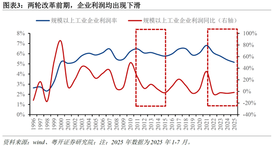 三是企业利润下滑。受需求回落、价格下跌等因素影响,企业利润出现下滑。供给侧改革时期,2015年工业企业利润同比下降2.3%,是1998年以来的首次负增长;同年工业企业利润率下滑至5.76%,创2009年以来新低。反内卷时期,工业企业利润自2022年开始负增长,2025年前7个月同比下降1.8%;2025年前7个月工业企业利润率下滑至5.15%,低于供给侧改革时期,且创2001年以来新低。