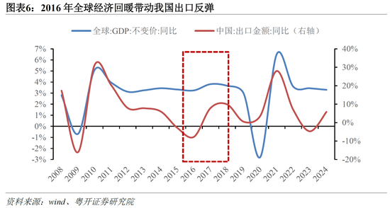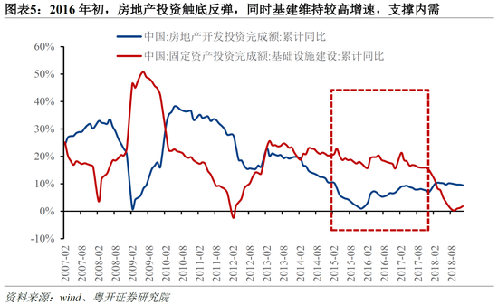 供给侧改革时期,房地产经历去库存后进入上行周期,且全球经济回暖带动出口回升,需求仍有韧性。内需方面,2008年国际金融危机后,“四万亿”刺激计划提振了经济,但是随着“四万亿”等宏观刺激政策逐渐退坡,需求趋于回落,房地产进入去库存周期。2015年之后,随着棚改货币化安置等政策实施,房地产库存去化加快。2016年初房地产投资触底反弹,房地产市场进入上行周期。同时,基建投资维持了约15%-20%的较高增速,与房地产共同对内需形成有效支撑。外需方面,随着2008年国际金融危机和2012年欧债危机的冲击逐步消退,2016年全球经济开始复苏,外需回暖带动中国出口增速大幅反弹,2017年我国出口同比增长7.9%,增速比上年提高15.6个百分点。