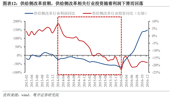 供给侧改革起因背后的供需不平衡,主要是源于“四万亿计划”等刺激政策退坡后的部分传统行业产能过剩。投资短期是需求,但中长期是供给,当终端需求不足时,前期投资很快就会形成过剩供给。2008年为应对全球金融危机推出的“四万亿”刺激计划等宏观政策,显著拉动了基建(2009年基建投资同比增长42.2%)和房地产投资(2010年房地产投资同比增长33.2%),同时也刺激了钢铁、水泥、煤炭等上游行业产能的大规模扩张。然而随着刺激政策消退和需求回落,前期过度投资所形成的庞大产能无法及时调整收缩,造成钢铁、水泥、煤炭等行业产能过剩。