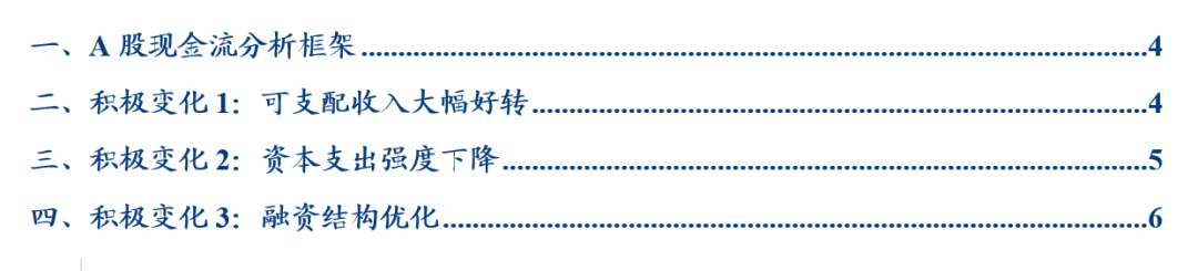 本篇报告结合上市公司的中报数据,分析上市公司的现金流。我们构建类似居民部门资金流向的分析框架,对企业部门的资金流入流出予以分析。其流入来自可支配收入(经营性业务)+股权融资+债权融资+存量储蓄损耗,其流出包括资本开支和金融投资。制造业上市公司的中报表明,今年上半年,企业的可支配收入大幅好转、资本开支强度有所下降、融资结构中股权融资占比有所提高。