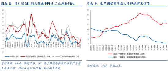 首先,从货币视角来看,企业手里流动性的多寡是影响经济好坏的直接因素。企业作为生产部门,如果企业愿意持有活期存款,那就意味着企业当下有用于生产或者投资的流动性诉求,不然企业如果做金融投资应该形成非银存款,企业分红应该形成居民存款,企业还债应该企业存款贷款双收缩。因此旧口径的M1(M0+单位活期存款)是研判PPI同比和工业产成品库存同比的领先指标。