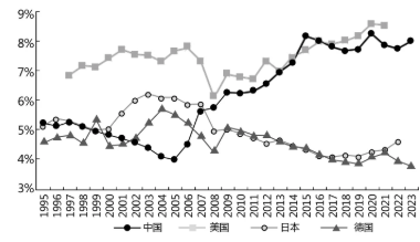 金融行业本身也存在规模经济效应,金融的规模经济与实体层面的规模经济有所不同。从金融部门的规模来看,比较中国、美国、德国和日本的金融业增加值占国内生产总值(GDP)比重,有两点值得注意。其一,横向比较,日本和德国的比例相近,明显低于中国和美国。中国这一比例现在和美国接近,处于比较高的水平。其二,从自身发展历程来看,过去十几年日本和德国的这一比例下降,美国在2008年金融危机后一度向下,现在则基本回升到金融危机前的水平。中国从21世纪初开始较快上升,2017年后基本稳定下来(见图1)。