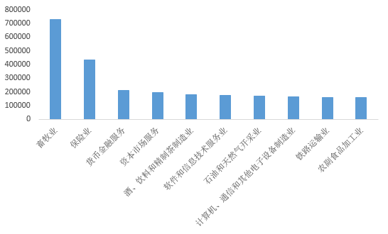 根据2019年沪深300融券余额最高的数据,结果可知,融券余额最高的前十行业依次为畜牧业(726511.33)、保险业(432412.14)、货币金融服务(210401.36)、资本市场服务(197180.23)、酒、饮料和精制茶制造业(181937.3)、软件和信息技术服务业(173405.39)、石油和天然气开采业(171372.93)、计算机、通信和其他电子设备制造业(163138.10)、铁路运输业(161624.21)、农副食品加工业(161116.75)。
