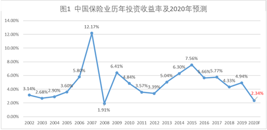 这就是疫情可能对中国保险业的最大冲击。图1给出了2002年以来保险业历年投资收益率及2020年的预测。