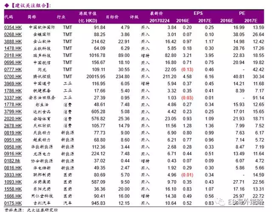 2)短期行情窗口仍未完全关闭,关注优质价差股的补涨机会:随着美联储3月议息会议的临近、特朗普大规模基建项目可能推迟至2018年后、欧洲大选中右翼崛起带来的潜在风险,国际资金的避险情绪小幅抬升(美10年期国债收益率跌至年内低位),因而未来国外主要证券市场资金流入速度若有所放缓,将会限制港股的短期上行能力。