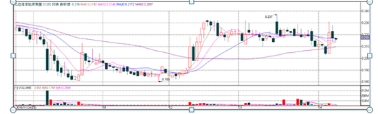 北控清洁能源在2015年6月中高见1.9元,开始回落,曾低见0.17元,上周五急升8.8%,收0.222元,股价或见底,若能升破成交密集区0.24元,首站睇0.3元。