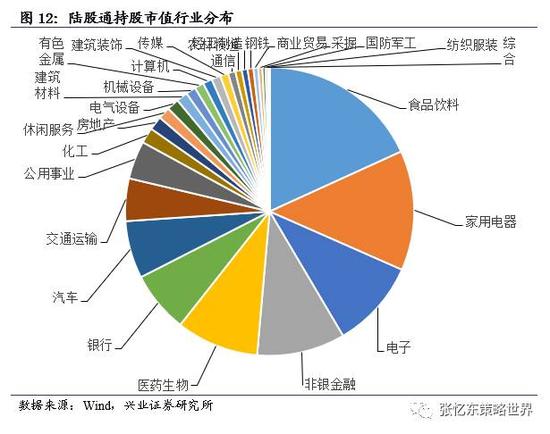 北上资金持股主要分布在食品饮料、家用电器和电子行业,按市值分别达陆股通总市值的18.19%、13.43%和9.91%。