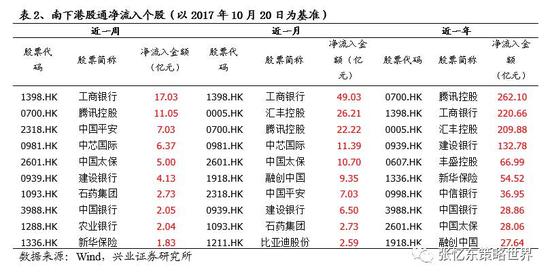 个股方面,10月16日-10月20日一周,南下资金净流入最多的股票为工商银行和腾讯控股;吉利汽车净流出最多。