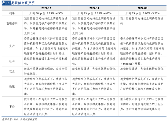 虽然加息放缓,但鲍威尔讲话重申鹰派立场。12月会议新闻稿与上次会议基本一致,表明美联储对美国经济、通胀、就业的判断未有明显改变。鲍威尔在新闻发布会上表示“直到委员会确信通胀率将持续下降至2%之前,我不认为我们会考虑降息,恢复价格稳定需要在一段时间内保持限制性政策立场。” 并且鲍威尔预计美联储2023年不会降息。对于下一次的货币政策会议,鲍威尔表示“明年2月的加息幅度将取决于未来的数据和就业市场,我无法告诉你下一次加息幅度,50bp或25bp均有可能。”