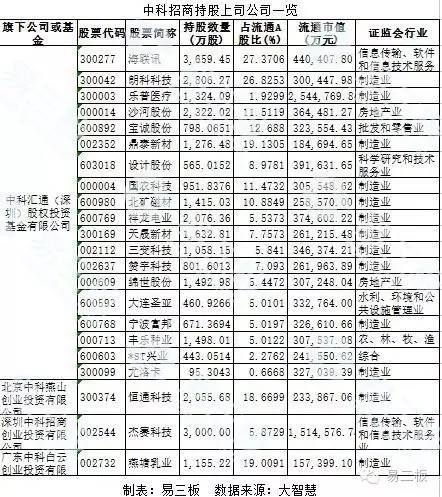 但易三板通过查阅相关资料发现,截至发稿,中科招商手中持有的上市公司可远不止这16家。