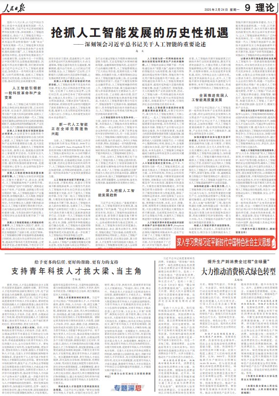 人民日报刊发中国工程院院士、鹏城实验室主任高文 文章《抢抓人工智能发展的历史性机遇(深入学习贯彻习近平新时代中国特色社会主义思想)——深刻领会习近平总书记关于人工智能的重要论述》。文章指出,发展人工智能是筑牢强国根基的必然要求。在全球竞争日益激烈的今天,科技实力是衡量国家综合国力的核心要素。人工智能作为新一轮科技革命和产业变革的重要驱动力量,是大国竞争的战略制高点。谁能在人工智能领域抢占先机、赢得主动,谁就能在国际舞台上掌握更多话语权,为国家长治久安、人民幸福安康奠定坚实基础。大力发展人工智能,是实现高水平科技自立自强、建设科技强国的重要举措,是提升国家核心竞争力、在全球科技竞争中脱颖而出的战略抉择。发展人工智能是推动高质量发展的新引擎。人工智能与实体经济深度融合,正催生大量新产业、新业态、新模式。人工智能赋能传统产业转型升级,让“中国制造”迈向“中国智造”,使制造业在生产效率、产品质量、创新能力等方面实现质的飞跃。人工智能促进新兴产业蓬勃发展,如智能机器人、无人驾驶、智能家居等,创造出大量新的经济增长点和就业岗位,为经济增长注入源源不断的新动能。以人工智能为重要引擎的数字经济,正成为推动全球经济复苏和可持续发展的重要力量,为我国在新时代新征程上实现经济社会高质量发展开辟了广阔空间。
