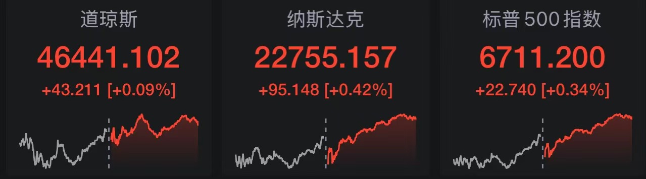 周三美股三大指数集体收涨,纳指涨0.42%,标普500指数涨0.34%,道指涨0.09%。大型科技股多数上涨,英特尔大涨超7%,消息称拟为AMD代工生产芯片,特斯拉涨超3%,马斯克身家突破5000亿美元,甲骨文涨超2%,AMD、博通涨超1%,谷歌、亚马逊、英伟达、苹果、微软微涨,Meta跌超2%。