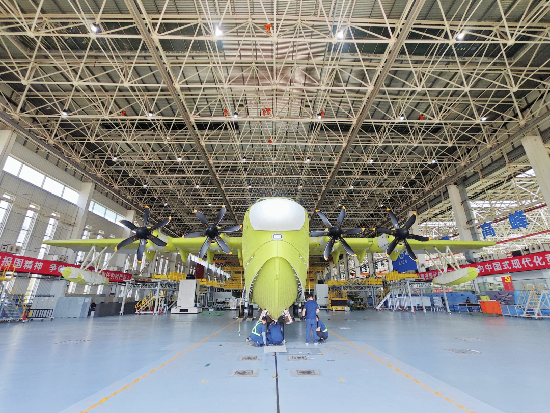 从中国航空工业集团获悉,近日,我国大型民用水陆两栖飞机AG600“鲲龙”批产第三架机(1103架)总装下线并圆满完成生产试飞,批产第四架机(1105架)机头大部件交付中国航空工业集团通飞华南,标志着AG600项目实现了从型号适航取证向小批量生产的重要跨越。(央视新闻)
