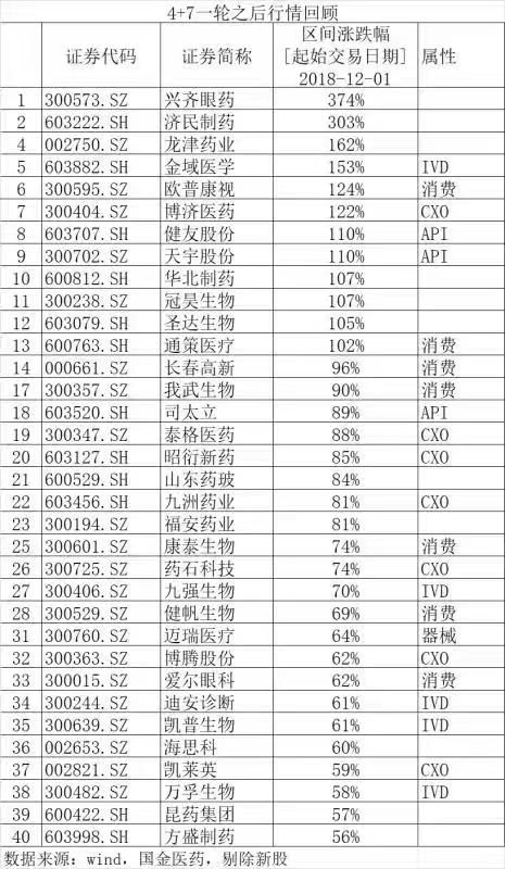 那么, 在上一轮之后,医药股又有哪些表现不俗?如下表所示。