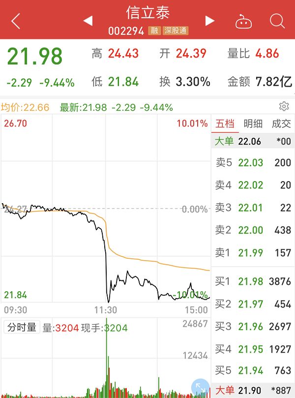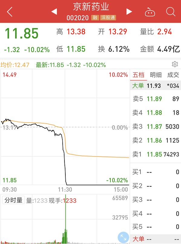恩华药业亦跳水跌停。