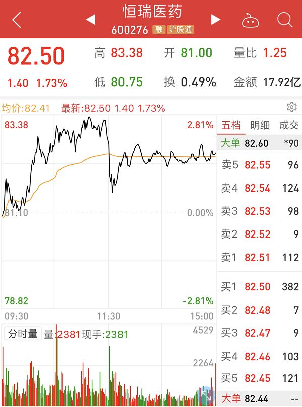 不过,从收盘的情况来看,恒瑞医药依然顽强收高。