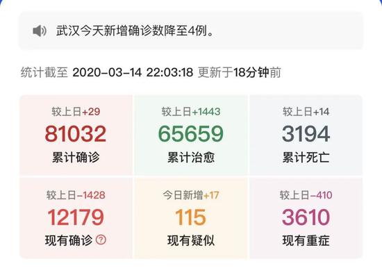 今天累计确诊数据为81032例,新增29例,武汉只新增了4例。我把其他地区的数据加起来只有15例,也就是说总数是19例。好像统计数据个数加起来和总数对不上。总之,国内疫情算是控制住了。