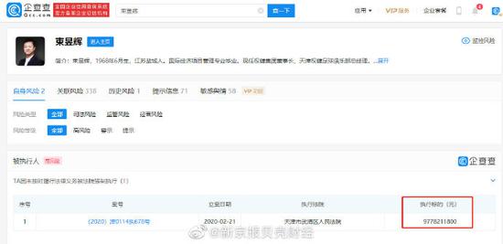 【#权健转移财产被查#目前已被法院执行】企查查APP显示,权健自然医学科技发展有限公司于4月8日新增被执行信息,该公司失信行为为以虚假诉讼、虚假仲裁或者以隐匿、转移财产等方法规避执行。企查查显示,目前该公司已被连续限制高消费5次,公司法定代表人束昱辉曾于20年被法院强制执行,执行标的为97.78亿。