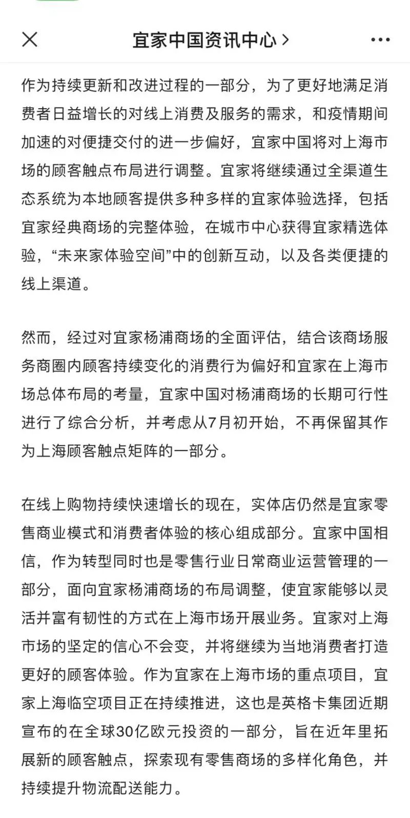 经全面评估宜家上海杨浦商场将于7月初关闭