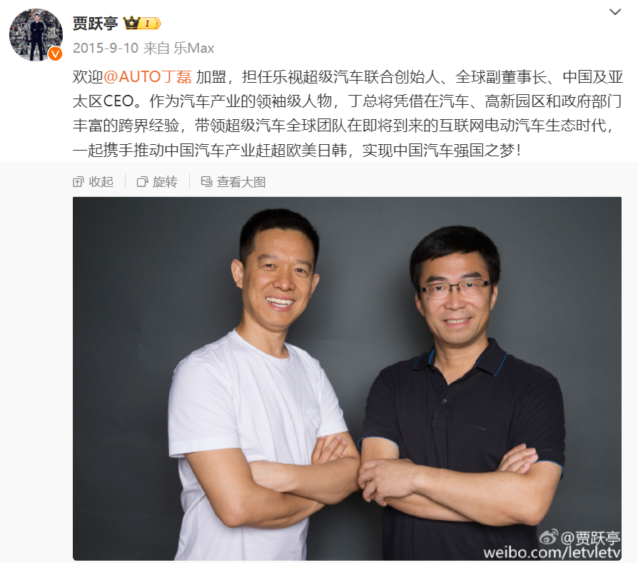 但两人合作的时日不长,2017年,丁磊在微博宣布,由于个人身体健康原因,经过慎重的考虑和与乐视创始人贾跃亭的充分沟通,决定将不再担任乐视超级汽车全球副董事长、中国及亚太区CEO等职务。