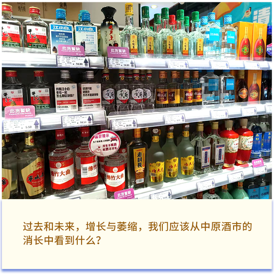 如果你对这个行业过于乐观,我们同样建议去河南看看。一条街上有六七家烟酒店的镜像只能在郑州见到,而在河南的超市,你可以在一面货架内同时看到50种以上光瓶酒。