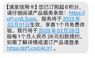 今年1月末,吴燕收到了“您已订购超6积分”的短信提醒,首月免费体验,2月28日起每月扣费28元。