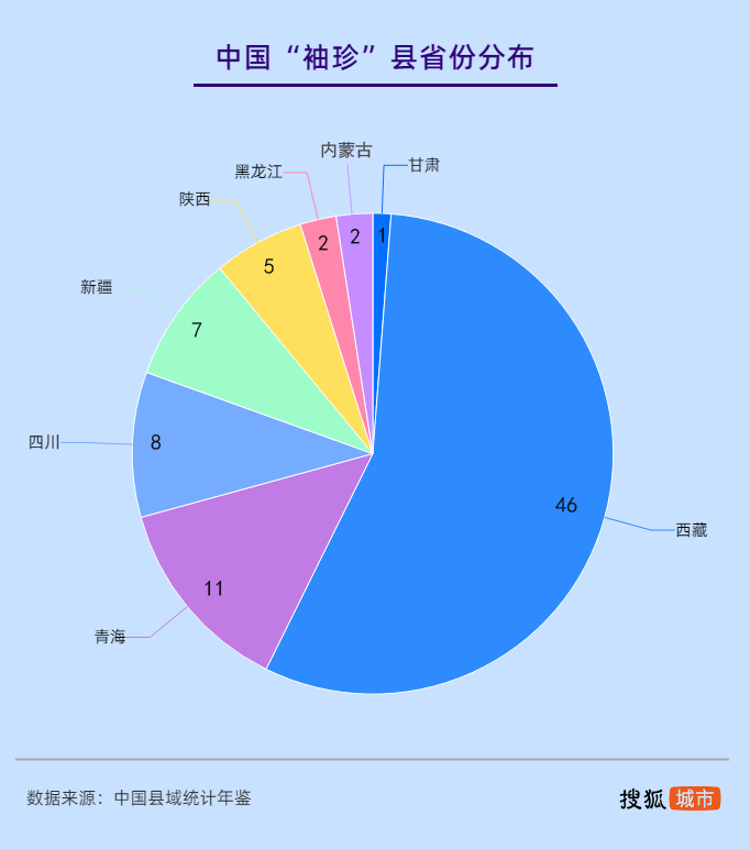 而82个户籍人口不足5万的“袖珍”县,几乎都位于地广人稀的西部。其中西藏共有46个,占了一半多。青海、四川和新疆分别有11个、8个和7个,陕西共有5个,其中就包括文章开头的佛坪。位于东北地区的黑龙江也有2个,分别在大兴安岭地区和双鸭山市,均处于边境地带。