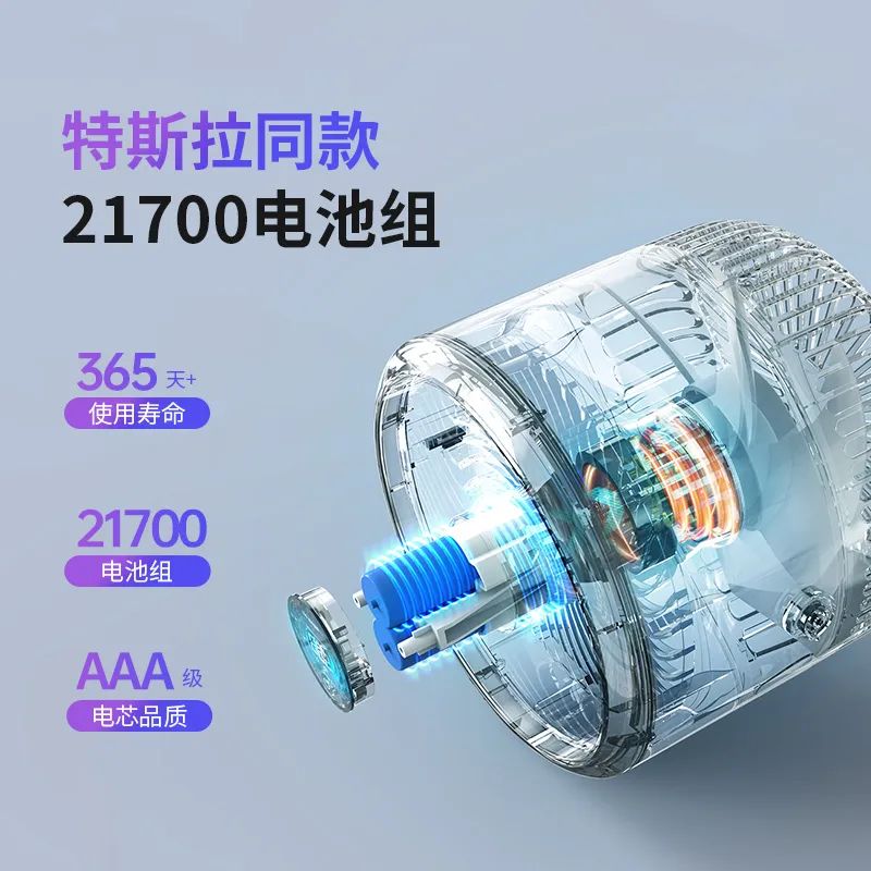 相比18650电池,21700更加轻量化,并且在相同体积下,21700电池可以存储更多的能量,延长设备的续航时间。
