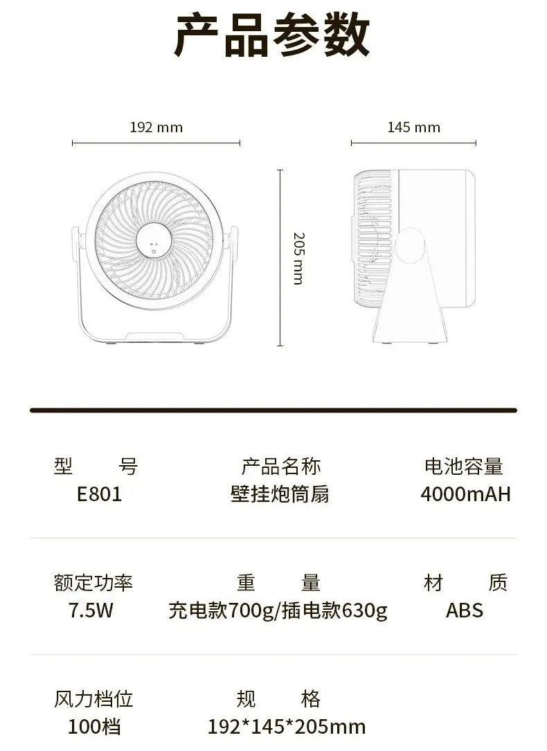 √特斯拉同款电池√台壁两用√无线续航√整屋循环√角度可调√前置数显√静音低噪√小巧易携