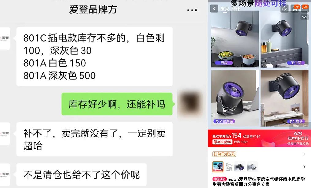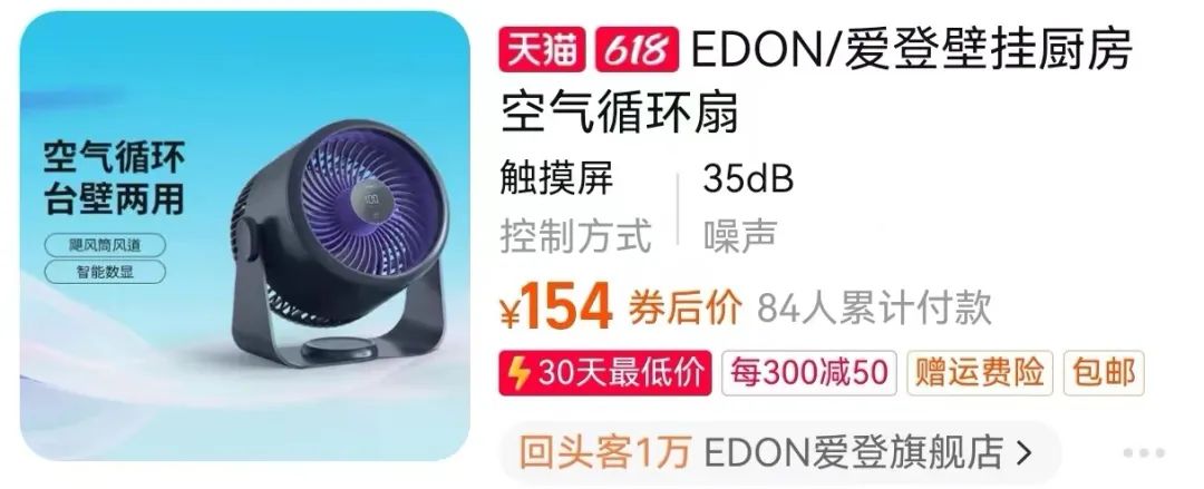 爱登壁挂循环扇日常都要卖到154元。