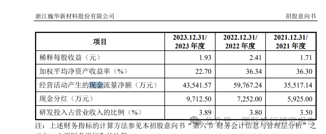 4 、巍华新材其实不差钱。IPO意向书显示,公司的资产负债率只有 7.27%,公司多年来都花几个亿购买理财产品,连续分红 5000-9700万不等,2023年末,公司货币资金达到12.55亿元。但公司的第一版 IPO说明书显然有恶意搞钱的嫌疑。当时的 IPO 说明书显示,公司要融资 21.68亿,其中补充流动资金 5 亿。在最新的IPO意向书中,5 亿砍掉了,现在想想,融资就是我裤子上的松紧带,随便编。