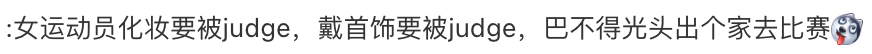 但次次都关注女运动员好不好看、打扮没打扮的,也都是这些喷子一马当先。