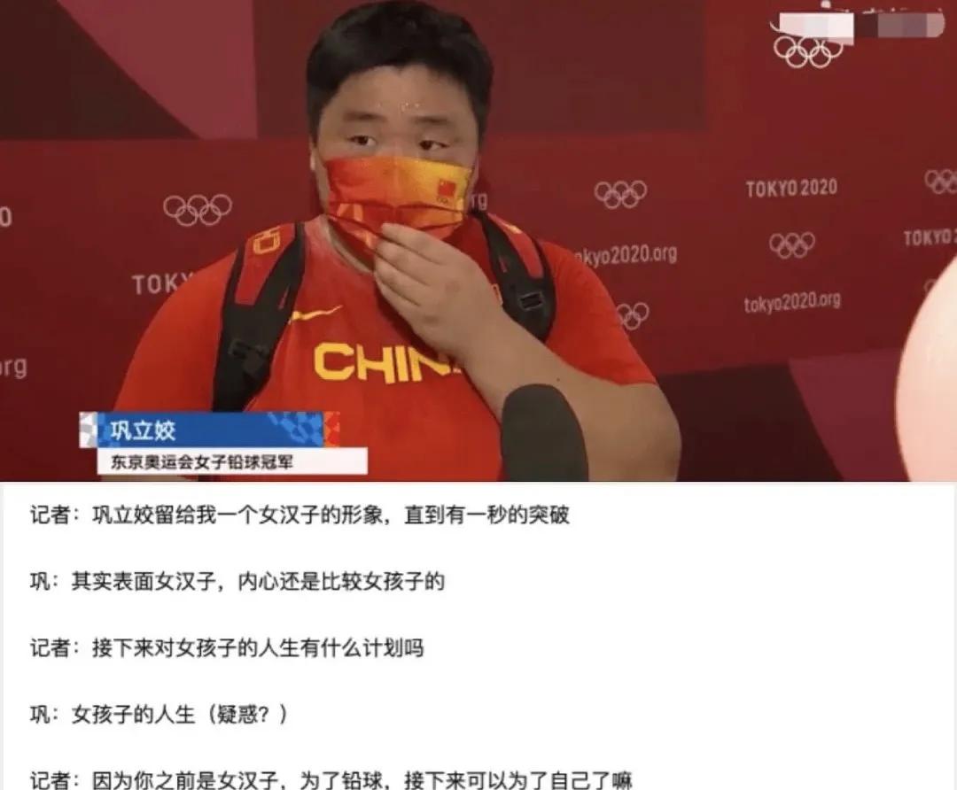 好比巩立姣在东京奥运会上夺得女子铅球冠军,