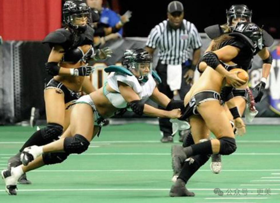 直到现在,美国女子橄榄球运动,规定她们只能穿内衣,