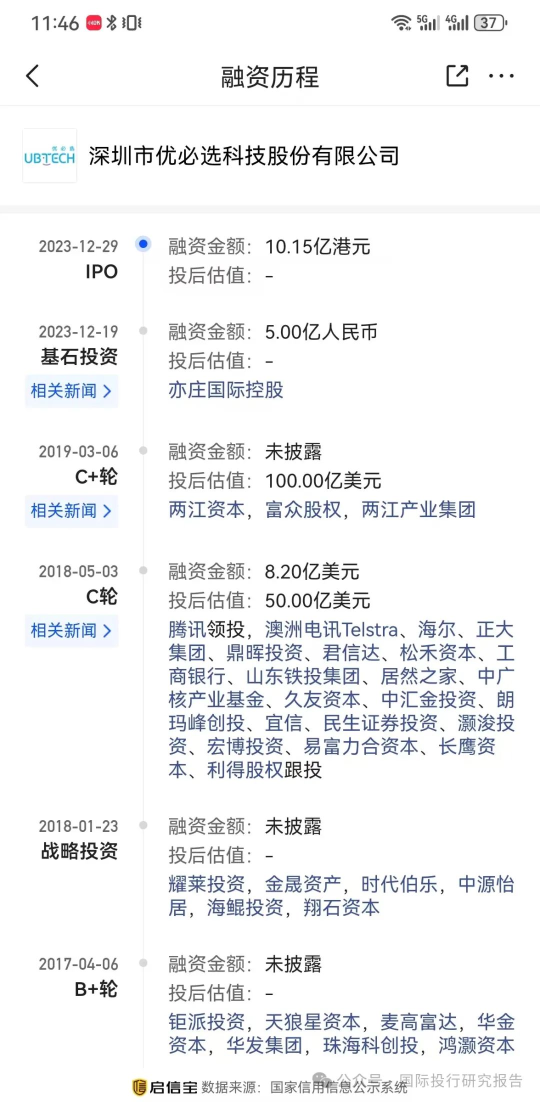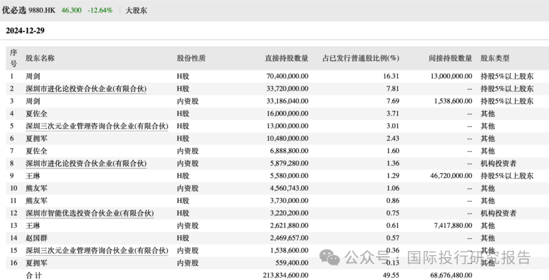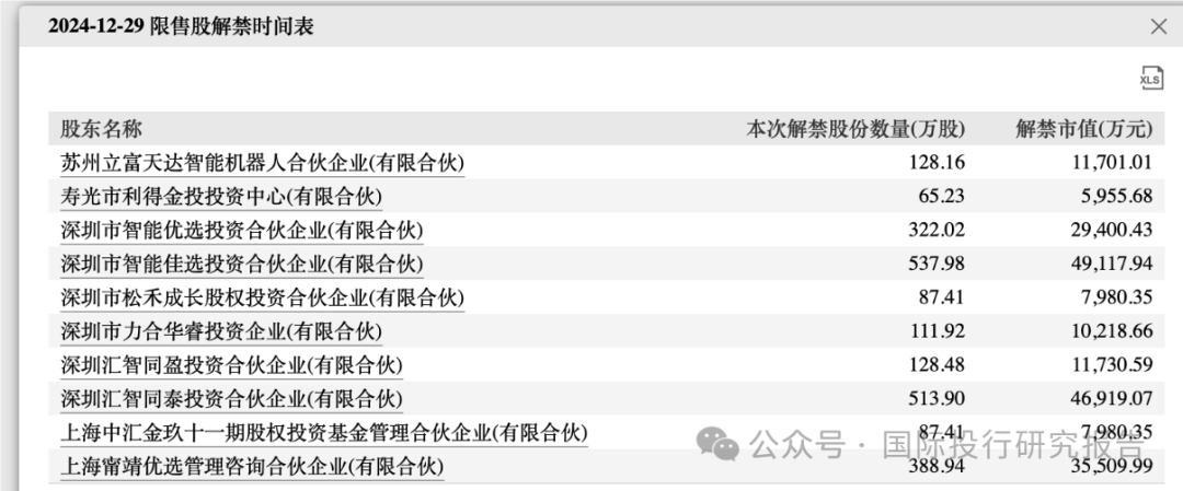 2 、也是这一天,2024 年 12 月 29 日,包括腾讯资本在内的大量私募基金股票解禁,也就是说他们可以选择在 2 级市场套现了。12月30日,民银资本间接全资附属公司YBX于12月30日在公开市场上出售174.8万股优必选股份,相当于已发行优必选股份总数约0.4%,总现金代价1.38亿港元,工商资料显示,民银资本持有的优必选股份是于2018年5月从周剑手中通过协议转让而来,彼时收购价格为2000万美元(1.5557 亿港币)。如今持股已近7年,却以亏损姿态离场。而腾讯等解禁的股本当时是 C轮,当时估值为 50亿美元,而 2019 年的 C+轮投资,包括两江资本、两江产业集团等的估值为 100 亿美元,2023 年 12 月,优必选上市还获得了北京亦庄国际控股的 5 亿投资。这些投资现在都已经在水下了。