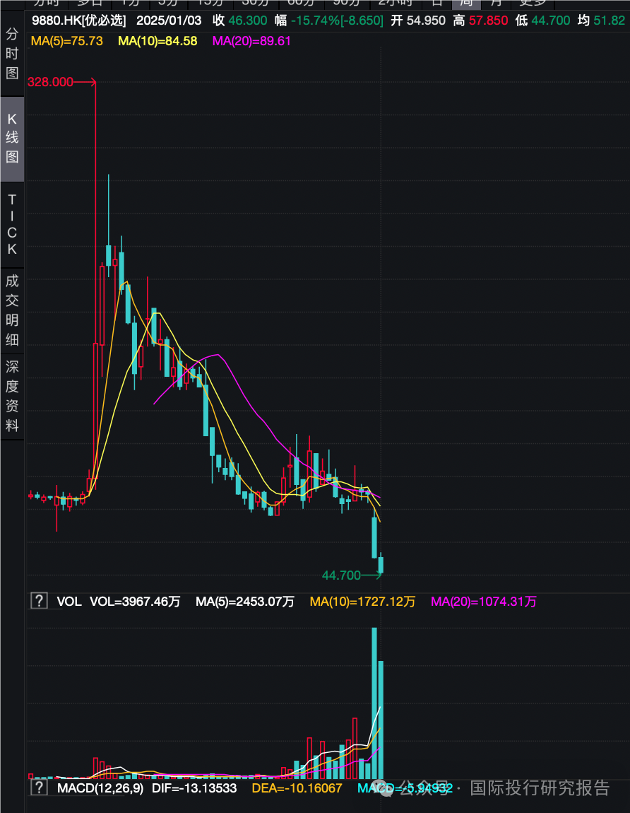4 、优必选作为最红的人形机器人第一股,上市后就受到追捧,最高被拉到 328 元,而随着公司一致行动人的土崩瓦解,公司的股价也天崩地裂,新年连续暴跌后,股价已经只有 44.70 元,市值 199.8 元,远离私募基金当时投资的估值,而民银资本亏损也要清仓的消息传导出的信息更不好,更多的私募基金会割肉,主要是前一致行动人的成本都很低,他们任何时候走人都是大赚!