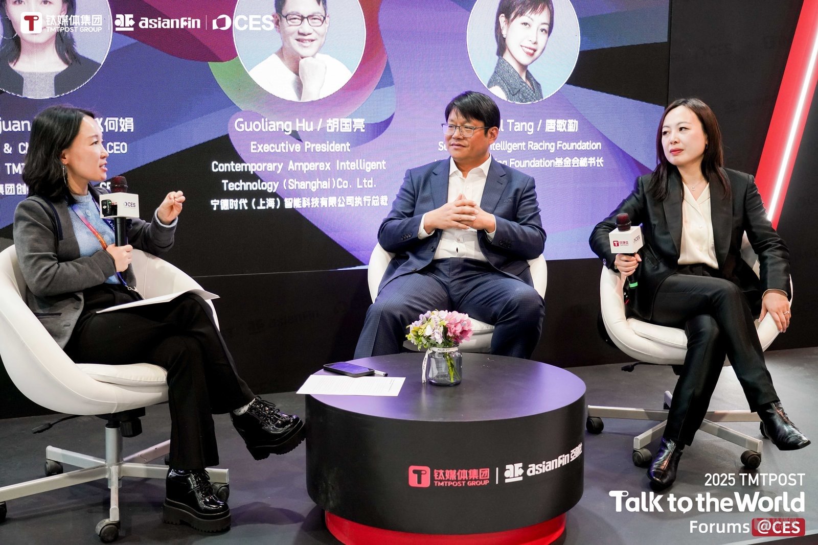 同时,钛媒体集团创始人&CEO赵何娟也在现场与智脑竞速基金会秘书长唐敏勤、时代智能执行总裁胡国亮围绕这次大赛以及AI与新能源出行的发展和愿景进行了深入探讨。