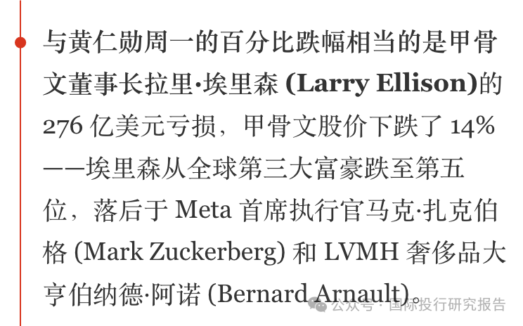 甲骨文董事长拉里·埃里森(净资产缩水276亿美元)