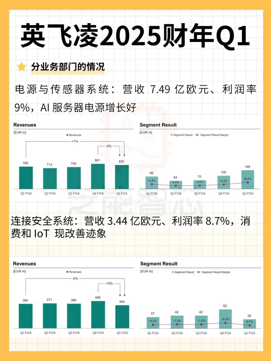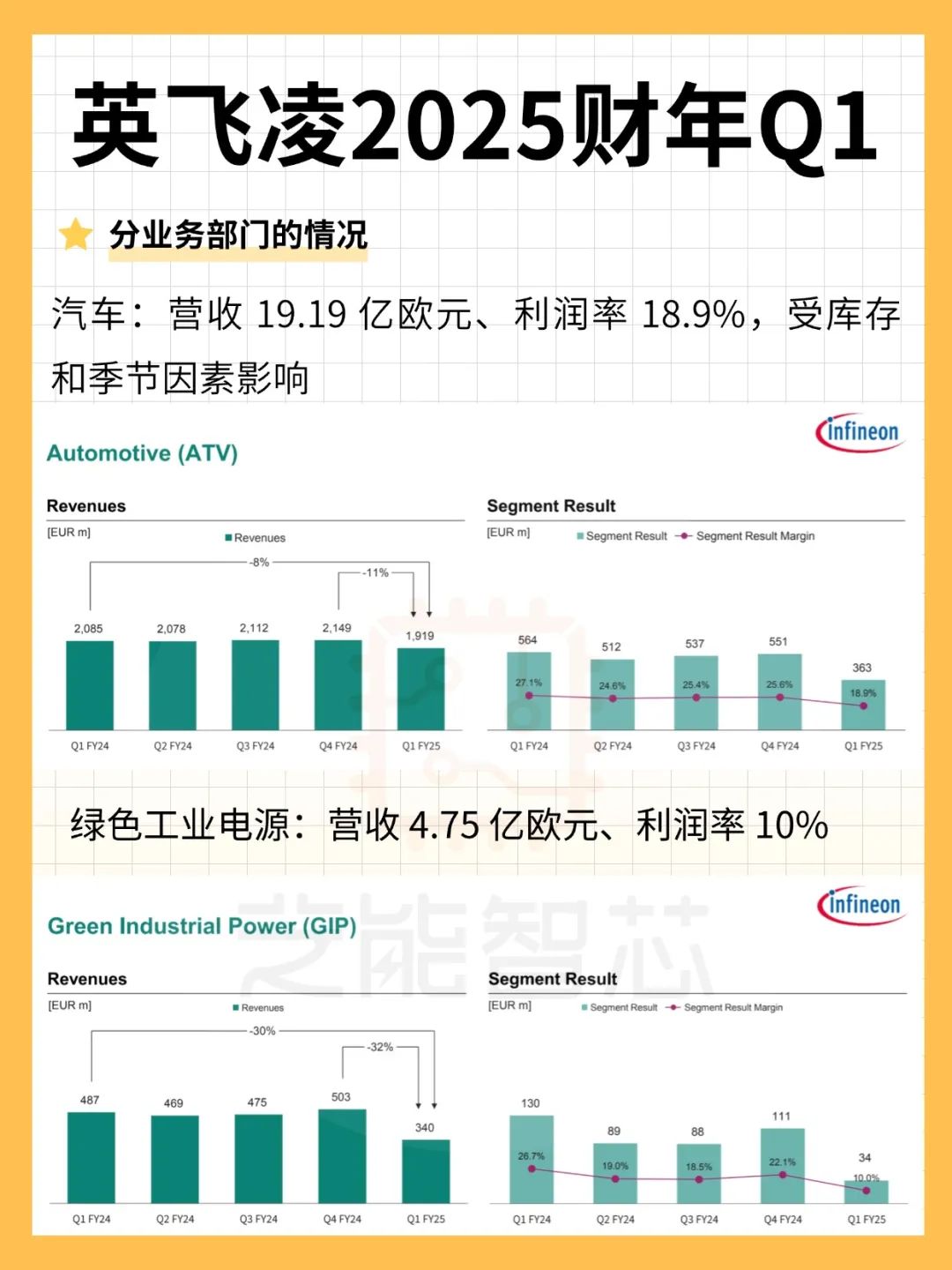 ◎汽车(ATV):营收19.19亿欧元,占比约56%,受库存调整及季节性因素影响,营收下降,中国新能源汽车市场的强劲表现为英飞凌提供了稳定支撑。