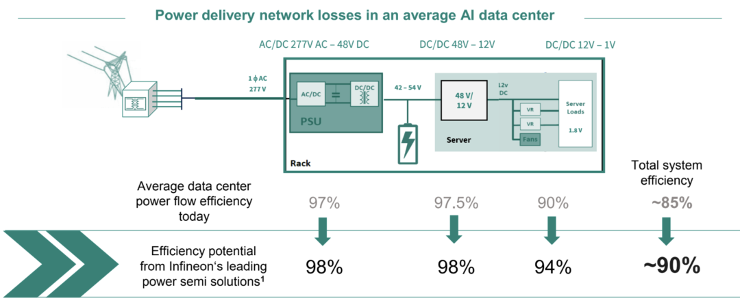 AI服务器市场正在成为英飞凌增长的重要动力源之一,为AI服务器提供高效电源管理方案,包括高功率密度DC-DC转换器、先进的功率半导体(Si、SiC、GaN)和 整体电源架构优化。